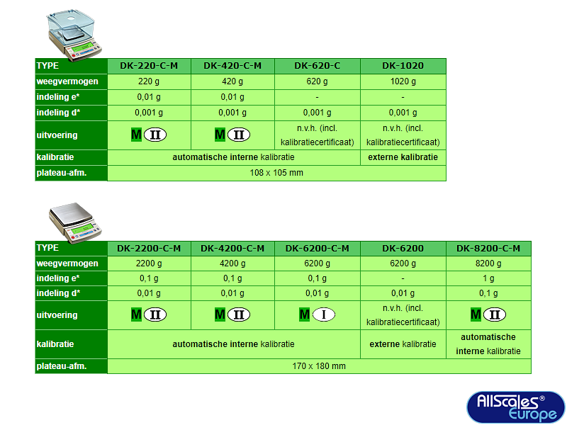 Division: d = 0,001 g / e = 0,01 g